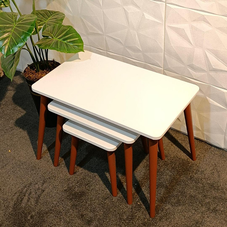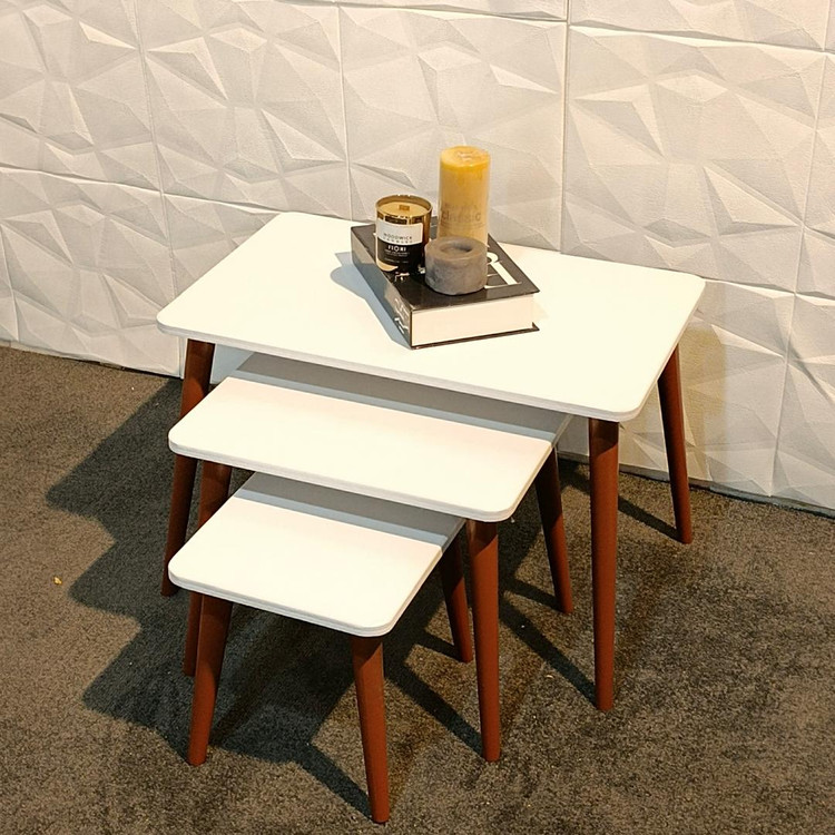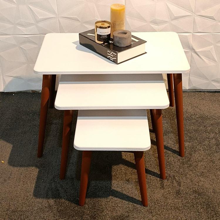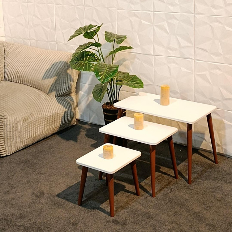 میز عسلی سه تایی مدل مینیمال مستطیل سفید مجموعه 3 عددی