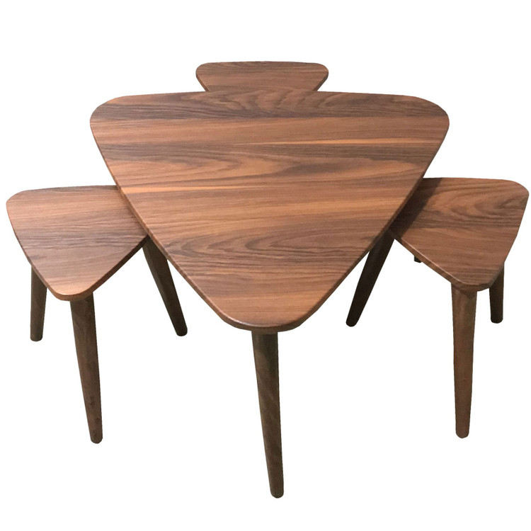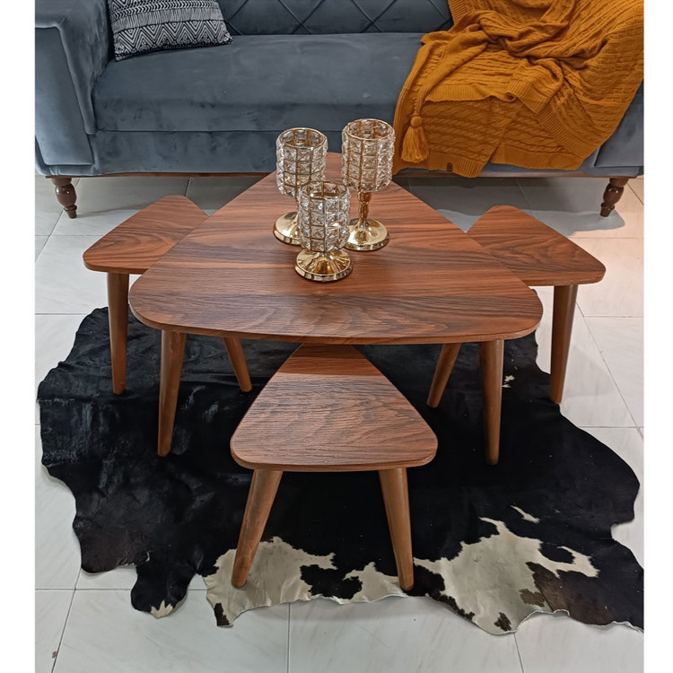 میز جلومبلی عسلی مثلث قهوه ای مدل مینیمال مجموعه 4 عددی