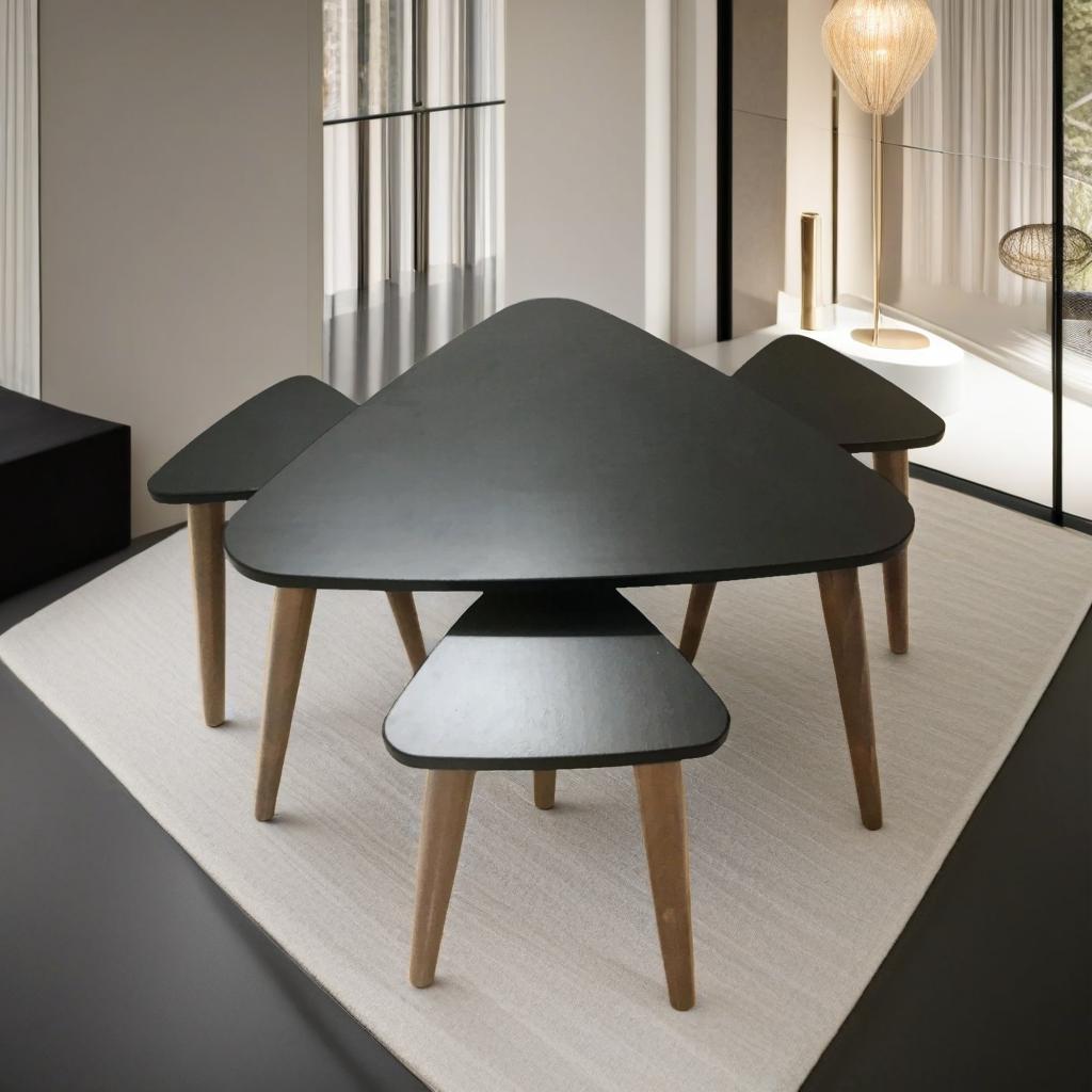میز جلومبلی عسلی مثلث مشکی مدل مینیمال مجموعه 4 عددی