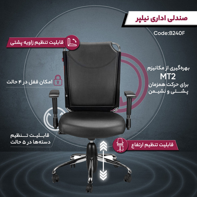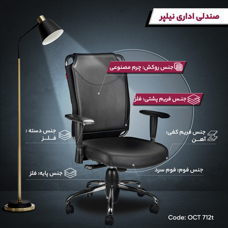 صندلی اداری نیلپر مدل OCT 712t با طراحی خاص و بی نظیر خود، به هر فضایی، اداری یا خانگی، حس آرامش و مدرنیته را به ارمغان میآورد. در طراحی این صندلی از پارچه مش در پشتی استفاده شده است تا هوا به راحتی در آن جریان یابد و از تعریق جلوگیری شود. در همین حال، فوم سرد قالبی در قسمت نشیمن استفاده شده است تا از افت و تحریک بدن ناشی از نشستن جلوگیری کند. از جمله ویژگیهای بارز این صندلی میتوان به پوشش پارچهی مرغوب بدون پرز دهی اشاره کرد. صندلی اداری نیلپر مدل OCT 712t با ارتفاع جک 10 سانتیمتر، امکان قفل در 4 حالت و تنظیم دستهها در 5 حالت را به کاربران خود ارائه میدهد. این ویژگیها باعث میشوند استفاده از این صندلی برای بسیاری از افراد راحت و کارآمد باشد. چرخهای این صندلی از جنسی با کیفیت ساخته شده است. پایهی پنجپر این صندلی از جنس فولادی با آبکاری کروم است که باعث افزایش زیبایی و جلوگیری از زنگزدگی و آسیب میشود. شرکت نیلپر اجزای تمامی محصولات خود را با استفاده از استانداردهای معتبر در آزمایشگاهی مجهز خود تست و آزمایش میکند؛ اعتماد و قطعیت در مورد کیفیت محصولاتش را به مشتریانش ارائه میدهد.