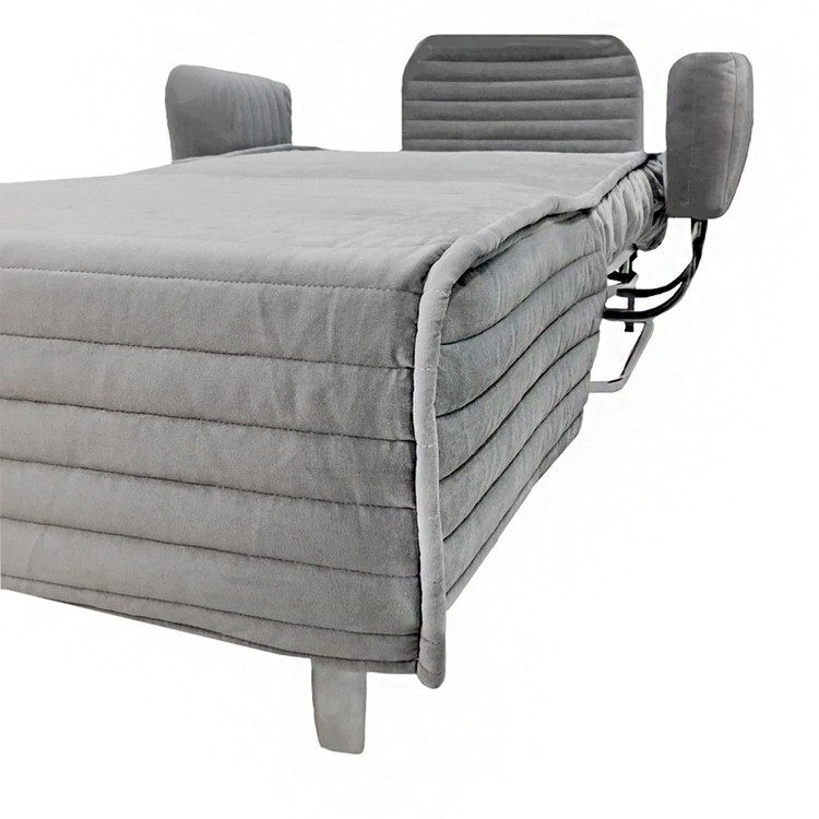 مبل تختخوابشو یک نفرۀ مدل «لِدا» در عینِ بیپیرایگی بصری، تمامی خصوصیات و امکانات یک تختخوابشو مدرن را دارا است. فرم مینیمال و کاربری آساناش مناسب تمامی آپارتمانهای امروزی، بیمارستانها، هتلها، ویلاها و دفاتر اداری است. نشیمنگاه و پشتی محصول از فوم یورتان ۳۰ کیلویی تهیه شده که علاوه بر طبیبودناش، چگالی بسیار بالایی دارد که همین امر به دوام محصول کمک شایانی میکند. در کفی مبل و تخت این تختخوابشو از توری مفتول فلزی (مش) استفاده شده است و پارچۀ بهکاررفته در مدل «لِدا» از جنس الیاف نانو است که علاوه بر تنوع در رنگ، در برابر انواع لکهها، بهغیر از لکههای سخت، قابلیت لکهزدایی بالایی دارد. تمامی قسمتهای زیرین پارچه با الیاف لایکو از تشک جدا شده و قسمت روی پارچه نیز لمسهدوزی شده است، که این خصیصه باعث گردش هوا میان قسمتهای مذکور شده و از چروکشدن پارچه و تعریق در هنگام خواب جلوگیری میکند. تمامی قطعات فلزی بهکاررفته در محصول، ملوّن به رنگ الکترواستاتیک (کورهای) است که این مزیت باعث جلوگیری از پوسیدگی قطعات میشود و استفاده از محصول را در تمامی شرایط آبوهوایی امکانپذیر میکند. اتصالات و قطعات که از فلز سبک صنعتی انتخاب شده، با جوش صنعتی (CO2) بههم متصل شدهاند که این امر وزن نهایی محصول را در قیاس با سایر مبلهای تختخوابشو یکنفره بسیار پایین آورده است. بالش خواب از جنس «ویسکوز» و «بالفایور» مرغوب و قابل شستشو تهیه شده که کیسهای از جنس «اسپانباند» (الیاف پرسشده) آنها را دربرمیگیرد. چرخهای لِدا از ABS فشرده با ساچمه تهیه شده که حملونقل آن را بر تمامی سطوح آسان میکند. گفتنی است رنگ پارچۀ روکشِ تختخوابشو و کوسنهای همراه به سلیقه و انتخاب مشتری قابل تغییر است. در مجموع تختخوابشو «لِدا» مناسب افرادی است که فضای کمی برای استراحت در اختیار دارند و با این تختخوابشو میتوانند حداکثر بهره را از فضای پیرامونیشان ببرند.