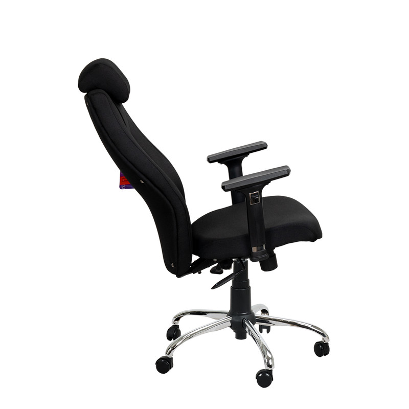 صندلی مدیریتی آرکانو مدل M390TF3 از دسته محصولات پرفروش بازار با پشتی مقاوم و بسیار شیک با رویه تمام پارچه و پشتی گردن تنظیمی که برای نشستن طولانی مناسب بوده پشتی این محصول از چوب 13لایه ساخته شده که مقاومت بسیار بالایی دارد و به دلیل داشتن فوم سرد و انحنای مناسب کمر، محصول کاملا ارگونومیک شده است روکش این محصول از پارچه تنفسی ایرانی میباشد و از کیفیت بالایی برخوردار است ، برای این محصول مکانیزم سفارشی دو دسته استفاده شده که علاوه بر مقاوت بالا در برابر فشار زیاد کفی به صورت همزمان با پشتی تغییر زاویه می دهد و در زوایای مختلف قابل قفل می باشد پایه های این محصول از لوله بیقی سنگین با آبکاری کروم تولید شده و جک این محصول تایوانی می باشد ، همچنین چرخ های محصول از جنس PU می باشند و وزن این محصول 19 کیلوگرم می باشد و در حالت تخلیه بودن جک صندلی ارتفاع کل محصول 120 سانتی متر ، ارتفاع تا بالای کفی 46 سانتی متر ، طول کفی 50 سانتی متر ، ارتفاع تا بالای دسته ها 68 سانتی متر و عرض کفی 50 سانتی متر می باشد (در ضمن عرض دسته ها 62 سانتی متر میباشد یعنی برای جا شدن زیر میز حد اقل عرض میز 63 و ارتفاع آن 69 باید باشد)همچنین حداکثر ارتفاع محصول بدون در نظر گرفتن افزایش ارتفاع پشتی گردن ذکر شده که امکان افزایش دارد ولی در حالت کلی ارتفاع محصول به وسیله جک 10 سانت امکان افزایش دارد و دسته های محصول از نوع تنظیمی با رویه PU میباشد، تنطیم ارتفاع و حرکت افقی رویه دسته از امکانات این محصول میباشد .