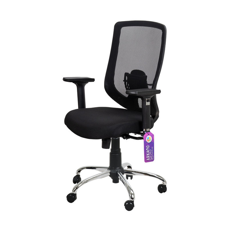 طراحی صندلی اداری آرکانو کد KP450TF4 پارچه ای بر اساس اصول استاندارد و ارگونومی بدن انسان ساخته شده است تا با پر کردن تمام کمر از ایجاد دردهای موضعی و خستگی جلوگیری می کند. در پشتی این صندلی قابلیت تنظیم ارتفاع گودی کمر ایجاد گردیده ، دسته این مدل از نوع متحرک می باشد که با فشردن ضامن های تعبیه شده در دسته ها امکان تنظیم ارتفاع دسته در چندین حالت و همچنین حرکت افقی و عرضی را بوجود می آورد تا موجبات آسایش و آرامش کاربران را فراهم کند. مکانیزم ویژه استفاده شده در این محصول باعث می شود تا کاربر بتواند کنترل کاملی بر روی تکیه گاه و نشیمن داشته باشد و امکان تنظیم ارتفاع و تنظیم زاویه دلخواه پشتی نسبت به کفی به وسیله اهرمهای زیر صندلی در بهترین حالت را دارا باشد ، در پشتی این محصول از پارچه مش بادوام استفاده گردیده که باعث عدم تعریق کاربر در موقع استفاده میگردد. همچنین چرخ های محصول از جنس PU می باشند و وزن این محصول 16 کیلوگرم می باشد و در حالت تخلیه بودن جک صندلی ارتفاع کل محصول 105 سانتی متر ، ارتفاع تا بالای کفی 46 سانتی متر ، طول کفی 50 سانتی متر ، ارتفاع تا بالای دسته ها 68 سانتی متر و عرض کفی 50 سانتی متر می باشد (در ضمن عرض دسته ها 67 سانتی متر میباشد یعنی برای جا شدن زیر میز حد اقل عرض میز 68 و ارتفاع آن 69 باید باشد) در حالت کلی ارتفاع محصول به وسیله جک ، 10 سانت امکان افزایش دارد و دسته های محصول از نوع تنظیمی با رویه PU میباشد، تنطیم ارتفاع و حرکت افقی و عرضی رویه دسته از امکانات این محصول میباشد .