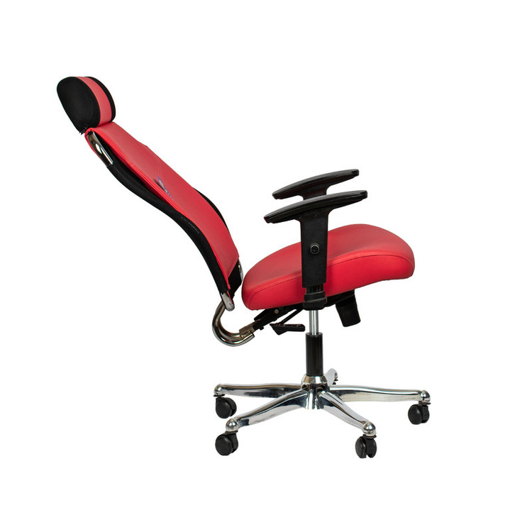 صندلی چرمی راحت و زیبایی که بخاطر طراحی و فرم خاص آن چشم هر بیننده ای را به خود جلب می کند. پشتی این صندلی را ، فریم آهنی شکل داده و در ادامه به طور یک تکه به مکانیزم ویژه سنکرون قفل کن دار چند حالته وصل شده است.قسمت های فلزی این صندلی شامل پایه، دسته ها و فریم پشتی با ترکیب نیکل و کروم آبکاری شده است، این امرضمن افزایش استحکام و جلوگیری از زنگ زدگی ، ظاهر زیبا و یکپارچه ای از صندلی را تداعی می کند.نشست کف و پودر شدن فوم صندلی از عمده مشکلاتی است که معمولا کاربران صندلی های اداری پس از مدتی با آن مواجه شده و باعث آزار آنان می گردد. استفاده از فوم سرد در نشیمنگاه این صندلی ضمن برطرف کردن این مشکل باعث افزایش عمر روکش صندلی شده است .رویه صندلی از جنس چرم ضد تعریق مرغوب ایرانی است و مقاومت بالایی در برابر سایش داشته و قابلیت شستشو با شوینده های معمولی را دارد.در قسمت پشتی از پارچه تنفسی با کیفیت، به عنوان آستری استفاده شده که در گذر زمان و تحت فشار حالت اولیه خود را حفظ می کند.دسته های تی شکل تنظیمی صندلی مدل «B750TF2» با مواد پی یو نرم روکش شده است و نرمی و لطافت حاصل از آن تکیه گاه مناسبی را فراهم کرده است.