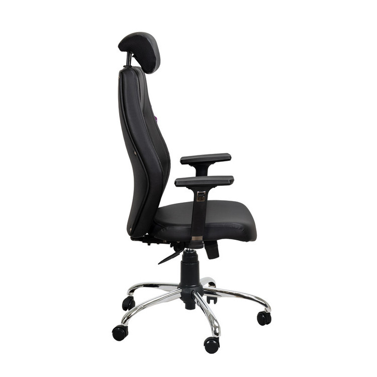 صندلی مدیریتی آرکانو مدل M390TF3 از دسته محصولات پرفروش بازار با پشتی مقاوم و بسیار شیک با رویه تمام چرمی و پشتی گردن تنظیمی که برای نشستن طولانی مناسب بوده پشتی این محصول از چوب 13لایه ساخته شده که مقاومت بسیار بالایی دارد و به دلیل داشتن فوم سرد و انحنای مناسب کمر، محصول کاملا ارگونومیک شده است روکش این محصول از چرم مصنوعی ایرانی میباشد و از کیفیت بالایی برخوردار است ، برای این محصول مکانیزم سفارشی دو دسته استفاده شده که علاوه بر مقاوت بالا در برابر فشار زیاد کفی به صورت همزمان با پشتی تغییر زاویه می دهد و در زوایای مختلف قابل قفل می باشد پایه های این محصول از لوله بیقی سنگین با آبکاری کروم تولید شده و جک این محصول تایوانی می باشد ، همچنین چرخ های محصول از جنس PU می باشند و وزن این محصول 19 کیلوگرم می باشد و در حالت تخلیه بودن جک صندلی ارتفاع کل محصول 120 سانتی متر ، ارتفاع تا بالای کفی 46 سانتی متر ، طول کفی 50 سانتی متر ، ارتفاع تا بالای دسته ها 68 سانتی متر و عرض کفی 50 سانتی متر می باشد (در ضمن عرض دسته ها 62 سانتی متر میباشد یعنی برای جا شدن زیر میز حد اقل عرض میز 63 و ارتفاع آن 69 باید باشد)همچنین حداکثر ارتفاع محصول بدون در نظر گرفتن افزایش ارتفاع پشتی گردن ذکر شده که امکان افزایش دارد ولی در حالت کلی ارتفاع محصول به وسیله جک 10 سانت امکان افزایش دارد و دسته های محصول از نوع تنظیمی با رویه PU میباشد، تنطیم ارتفاع و حرکت افقی رویه دسته از امکانات این محصول میباشد .