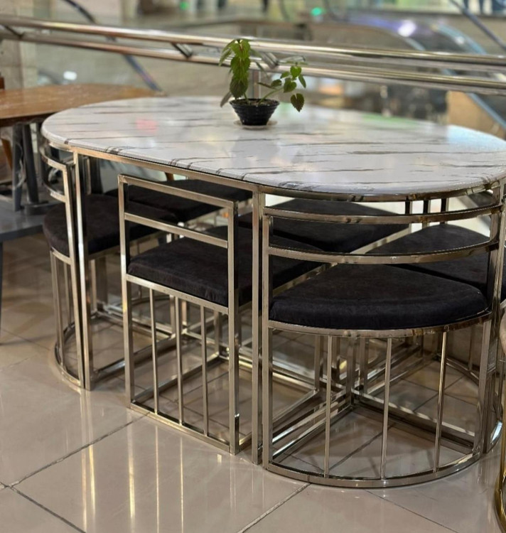 ناهارخوری فلزی فورتیک کمجا مدل سه خط بیضی ۶نفره ۵سال گارانتی