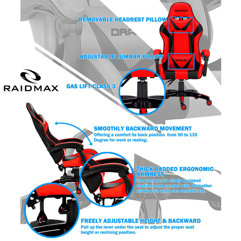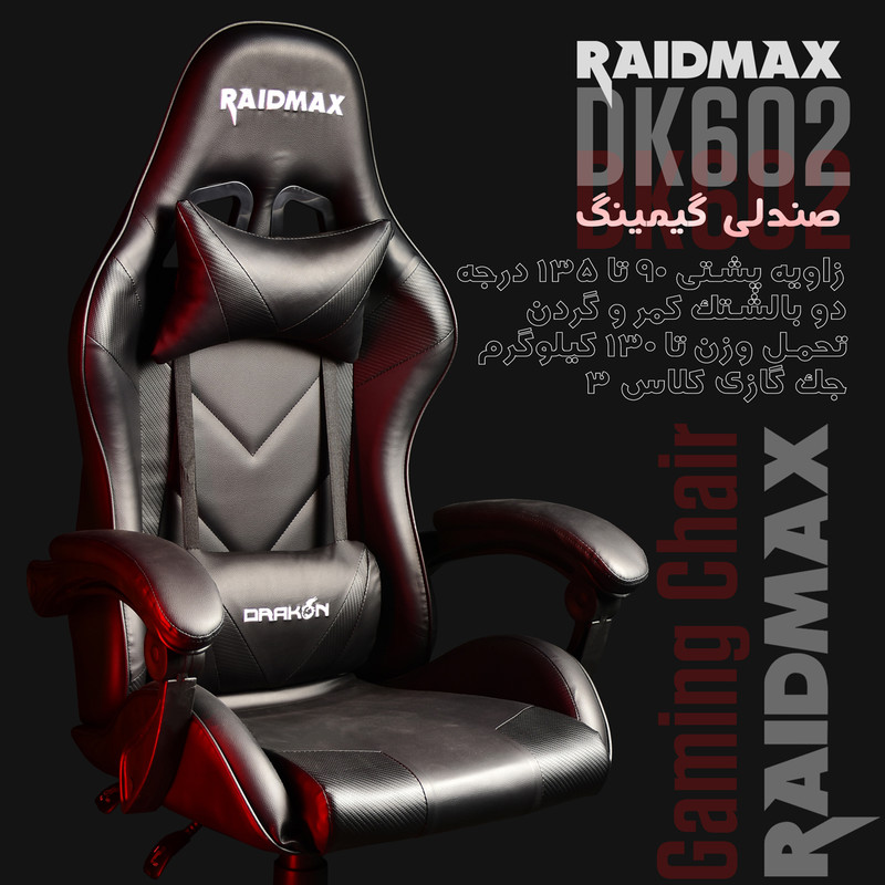 صندلی های گیمینگ با وجود کیفیت ساخت بهتر و ارگونومی قابل توجه برای استفاده طولانی مدت، اما به دلیل قیمت های به نسبت گران، دور از دسترس کاربران قرار دارند. هر چند برخی از مدل های موجود در بازار، قیمت مناسبی دارند، اما به هیچ وجه دارای کیفیت ساخت و کارایی لازم نیستند. کمپانی تایوانی ریدمکس با درک صحیح این موضوع و به منظور فراگیری استفاده از صندلی های گیمینگ، محصولاتی ارزشمند با کیفیت قابل توجه و قیمت بسیار مناسب تولید کرده است. صندلی گیمینگ ریدمکس Drakon DK602 یکی از محصولات جذاب این کمپانی به شمار می رود که دارای امکانات قابل توجه، کیفیت ساخت بالا، ارگونومی بی نظیر برای استفاده طولانی مدت و در نهایت قیمت رقابتی است. ساختار طراحی DK602 شباهت فراوانی به صندلی خودروهای مسابقه ای دارد و با وجود به کارگیری الیاف تا حدودی خشک، احساس لذت بخشی را منتقل می کند. طراحی بخش پشتی و نشیمن گاه به گونه ای صورت گرفته که بی درنگ پس از نشستن روی آن، احساس آرامش می کنید. در نقطه بالایی از پشتی صندلی، دو عدد شیار متقارن به منظور تهوه هوا برای جلوگیری از تعریق پشت گردن و سر تعبیه شده است. ارگونومی بسیار بالای صندلی RAIDMAX برای آن دسته از گیمرها و کاربرانی که به مدت طولانی کار می کنند، به شدت مناسب بوده و احساس خستگی را به طور کامل از بین می برد. ابعاد بخش پشتی بدنه برابر با 53 سانتی متر برای عرض و 83 سانتی متر برای ارتفاع بوده و بخش نشیمن گاه نیز دارای ابعاد 51 سانتی متر برای عرض و 60 سانتی متر برای عمق است. به دلیل استفاده از جک گازی با کیفیت کلاس 3، کاربرانی با وزن 120 تا 130 کیلوگرم می توانند به سادگی از راحتی بی نظیر DK602 بهره مند شوند.