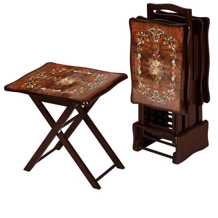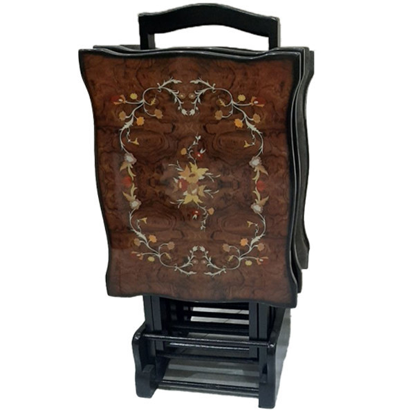 میز های جلو مبلی تاشو ( چمدانی) با حجم کم و اندازه یکسان هر چهار تا میز این امکان را برای خانه هایی با فضای کم ایجاد میکند تا بدون پر کردن فضای منزل در گوشه ای از آن گذاشته شود بزرگترین ویژگی این میز ها هم امکان تاشو بودن هست و هم یک اندازه بودن سطح هر چهار میز میباشد